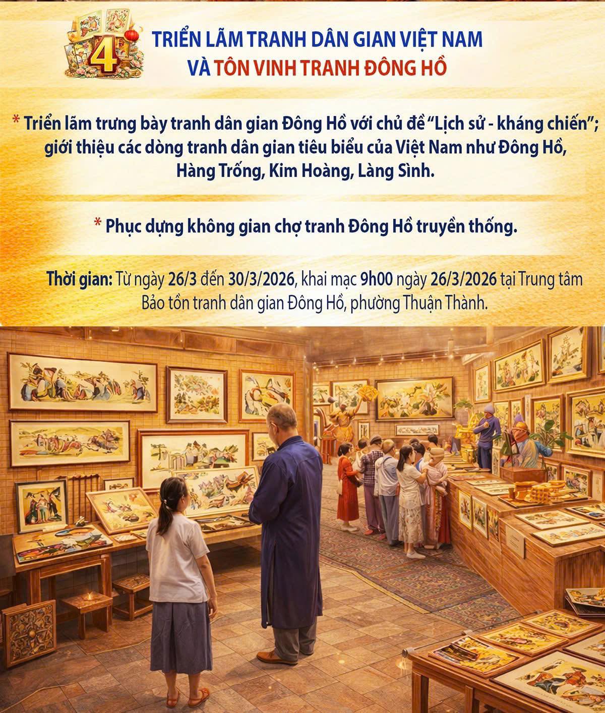 Không chỉ là những câu hát quan họ thân thương, hiền hòa, dìu dặt như sóng vỗ mạn thuyền, mà Festival “Về miền di sản - 2026” như một mùa lễ hội, bởi ngoài những hoạt động văn hóa còn mang ý nghĩa lịch sử với lễ đón nhận Bằng UNESCO cho nghề làm tranh dân gian Đông Hồ - một nét truyền thống của Bắc Ninh.
