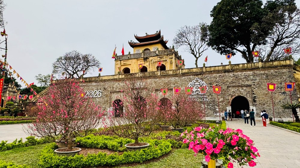 Đường hoa tại Hoàng thành Thăng Long - Hà Nội với chủ đề “Bình minh khát vọng” . Nếu đi từ cổng Đoan Môn đến thềm Điện Kính Thiên, từng bước chân như đi qua bốn chương: Kinh – Kỳ – Vọng – Hội: là ký ức kinh đô xưa, chiều sâu lịch sử, khát vọng vươn mình, mùa Xuân mới Bính Ngọ 2026 là niềm vui mùa Xuân sum vầy.