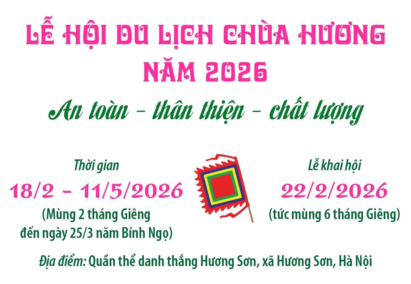 Đặc biệt, Lễ khai hội Chùa Hương 2026 sẽ được tổ chức long trọng vào ngày 22/2/2026 (tức mùng 6 tháng Giêng), đánh dấu thời điểm chính thức bước vào mùa trẩy hội tâm linh lớn
