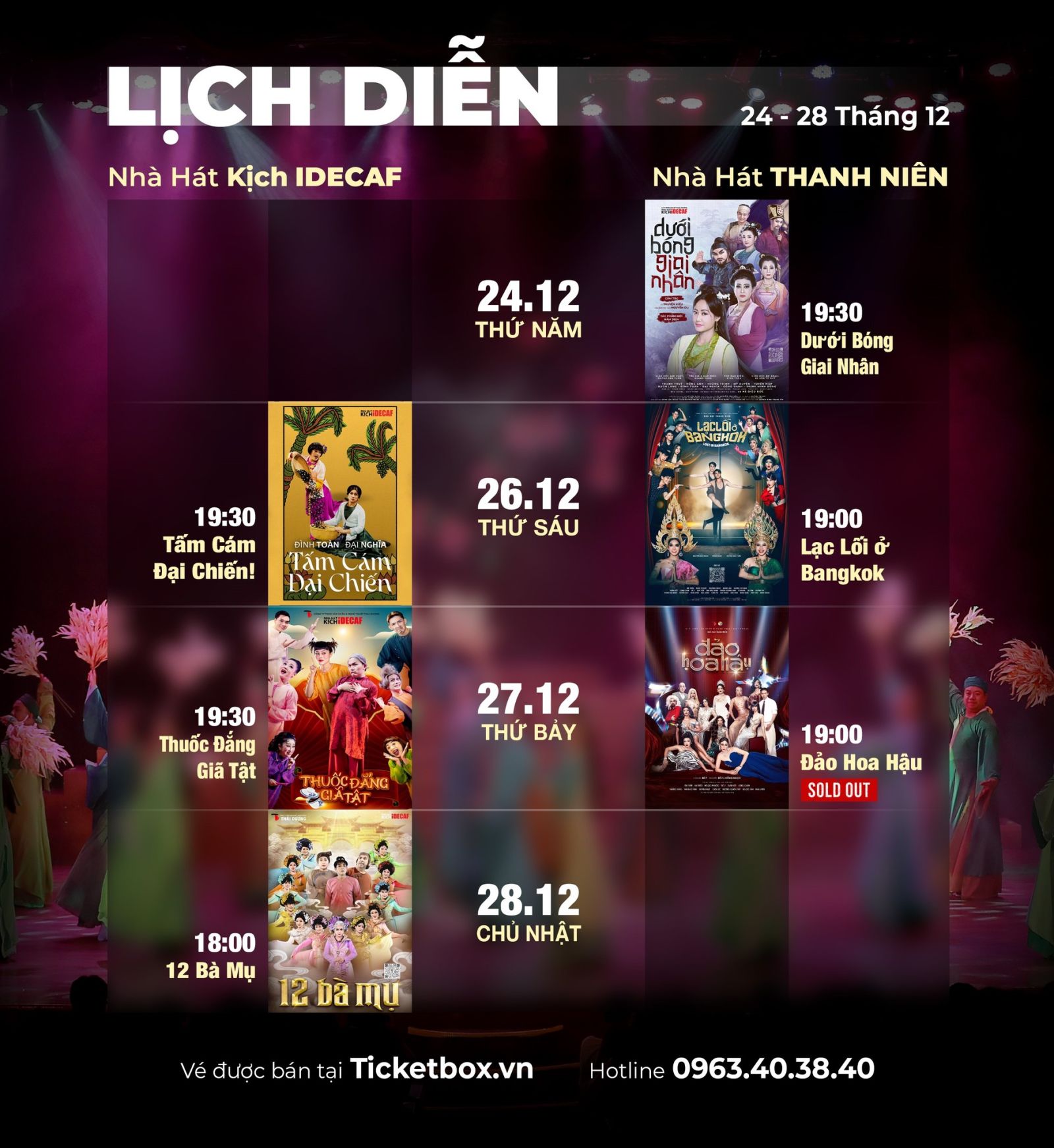 LỊCH DIỄN THÁNG 12-2025 - Sân Khấu IDECAF