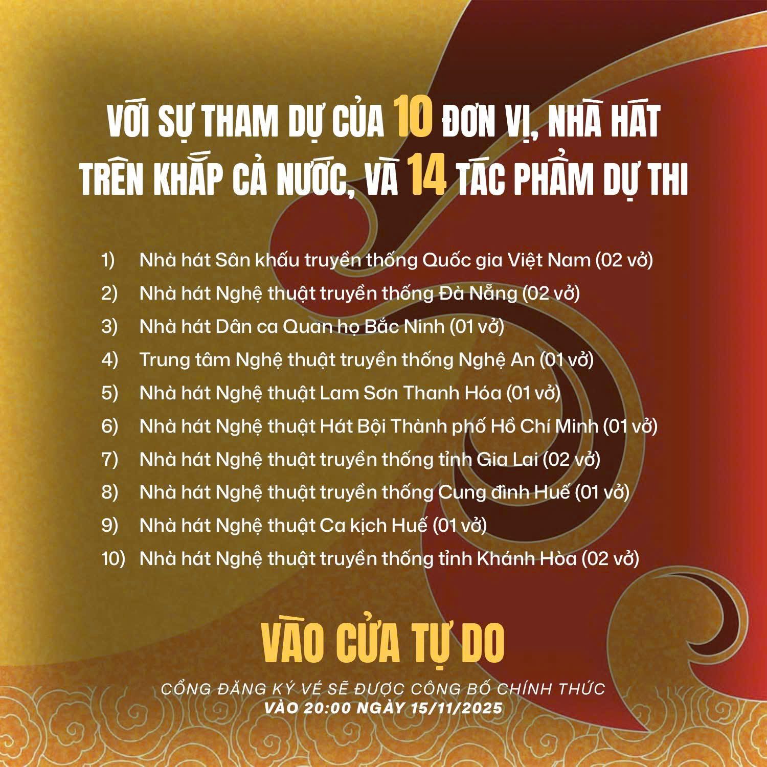Đại diện sankhauonline.com xin chúc tất cả anh chị em nghệ sĩ tỏa sáng và chúc Liên hoan Tuồng và Dân ca kịch toàn quốc năm 2025 thành công tốt đẹp! Trân trọng!!!