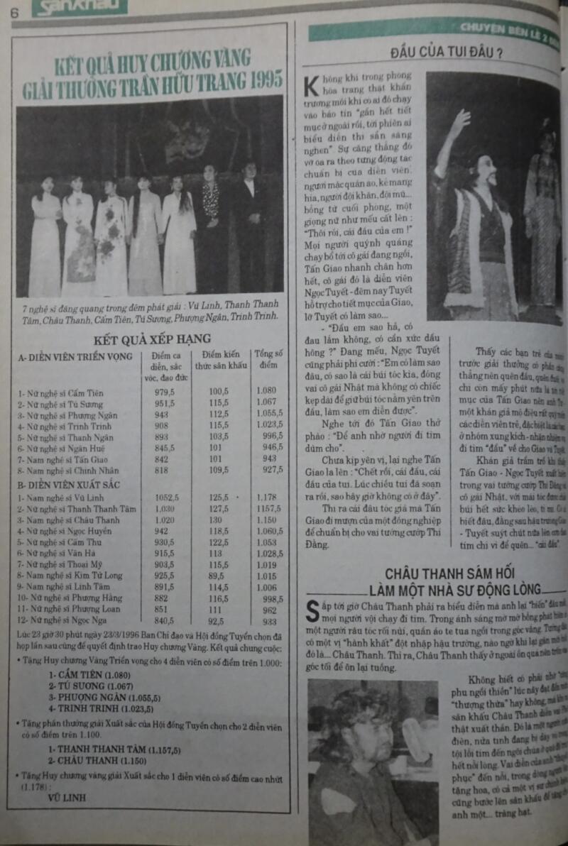 Hành trình cho vinh dự đăng quang đó trải qua 3 giai đoạn gắt gao giữa những nghệ sĩ trưởng thành của sân khấu cải lương từ sau năm 1975. Từ tháng 9/1995, Giải thưởng đã được khởi động và đăng tải trên Báo Sân khấu TP.HCM với giai đoạn 1 từ sự bình chọn qua phiếu trưng cầu ý kiến của khán giả trên cơ sở danh sách dự thi của BTC thông tin hàng tuần với 60 thí sinh đăng ký dự thi. Giai đoạn này, nếu vòng kiểu phiếu lần 1 đến vòng 4 lần lượt là Ngọc Huyền và Kim Tử Long thì đến vòng kiểm phiếu thứ 4 cho đến khi kết thúc giai đoạn 1, Vũ Linh dẫn đầu danh sách trưng cầu ý kiến. Sang giai đoạn 2, trên cơ sở danh sách bình chọn từ giai đoạn 1, những ký giả sân khấu có kinh nghiệm của báo, đài tại TP.HCM sẽ tiến hành bình chọn. Và Nghệ sĩ Vũ Linh cùng 11 nghệ sĩ Ngọc Huyền, Kim Tử Long, Thanh Thanh Tâm, Vân Hà, Châu Thanh, Phượng Hằng, Thoại Mỹ, Linh Tâm, Châu Thanh, Cẩm Thu, Ngọc Nga đã được các ký giả bình chọn tham dự giai đoạn 3 của giải thưởng.