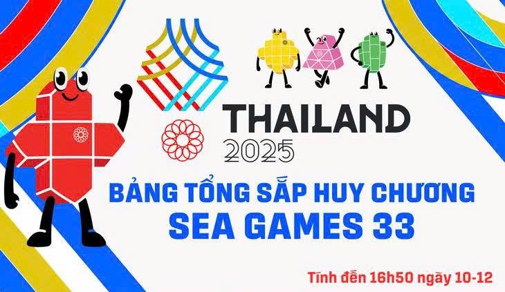 Tính theo 16g50 ngày 10 tháng 12 năm 2025, vị trí bảng xếp hạng huy chương tại SEA Games 33 đã có sự thay đổi, Đoàn Thể Thao Việt Nam vươn lên vị trí thứ 3, với 9 nước tham gia. Chúc mừng đoàn Thể Thao Việt Nam!