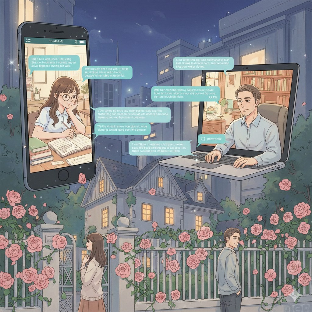 Thời gian trôi. Hoa Hồng lớn lên. Câu hỏi của cô thay đổi. Văn phong chững chạc hơn. Tin nhắn không còn chỉ xoay quanh bài vở, mà len vào đó là những điều vu vơ: một cơn mưa làm lòng nặng xuống, một ngày mệt mỏi, một cảm giác bị hiểu lầm không biết chia sẻ cùng ai.