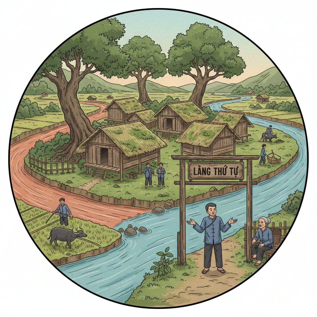 Ngày xưa, ở một vùng quê nằm giữa hai con sông chảy ngược chiều nhau, có một ngôi làng tên là Thứ Tự. Người làng bảo nhau rằng cái tên ấy có từ rất lâu, từ khi ông bà còn chưa biết đếm tuổi, chỉ biết hôm nay nối tiếp hôm qua, mùa này chờ mùa khác. Làng sống chậm. Chậm đến mức người đi xa quay về thường ngạc nhiên: mọi thứ vẫn y như cũ, chỉ có người già hơn và cây cao hơn.