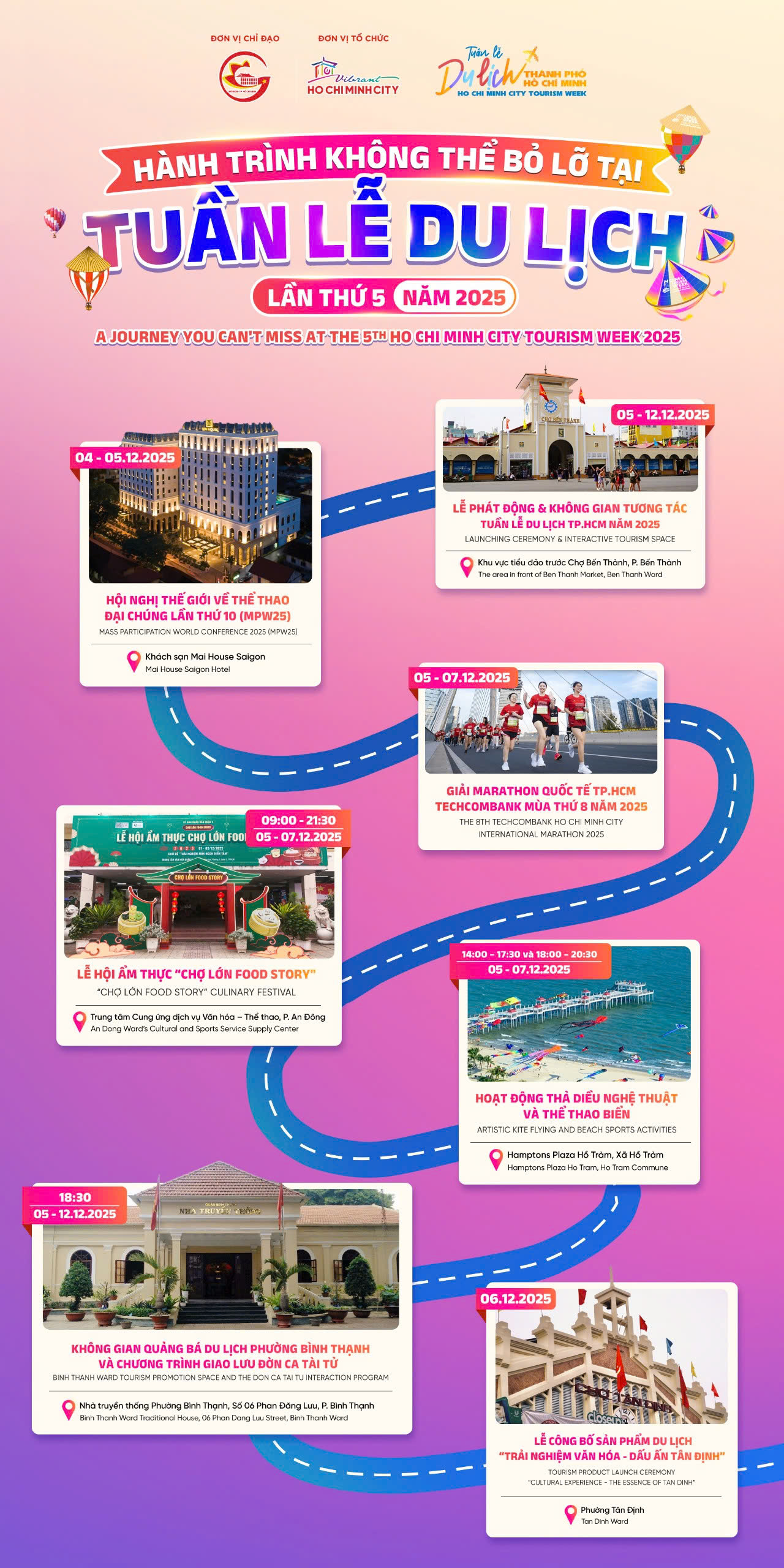 Lễ phát động & Không gian tương tác Tuần lễ Du lịch TP.HCM 2025, tại: Khu vực tiểu đảo trước Chợ Bến Thành, P. Bến Thành