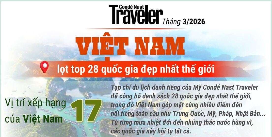 Ống kính của các tạp chí du lịch, đặt biệt - danh tiếng thế giới - Tạp chí Condé Nast Traveler vừa chính thức gọi tên Việt Nam trong danh sách 28 quốc gia đẹp nhất hành tinh. Giữa hàng trăm ứng cử viên sáng giá, dải đất hình chữ S đã khẳng định sức hút mãnh liệt bằng vẻ đẹp nguyên sơ hòa quyện cùng bề dày văn hóa ngàn năm văn hiến.