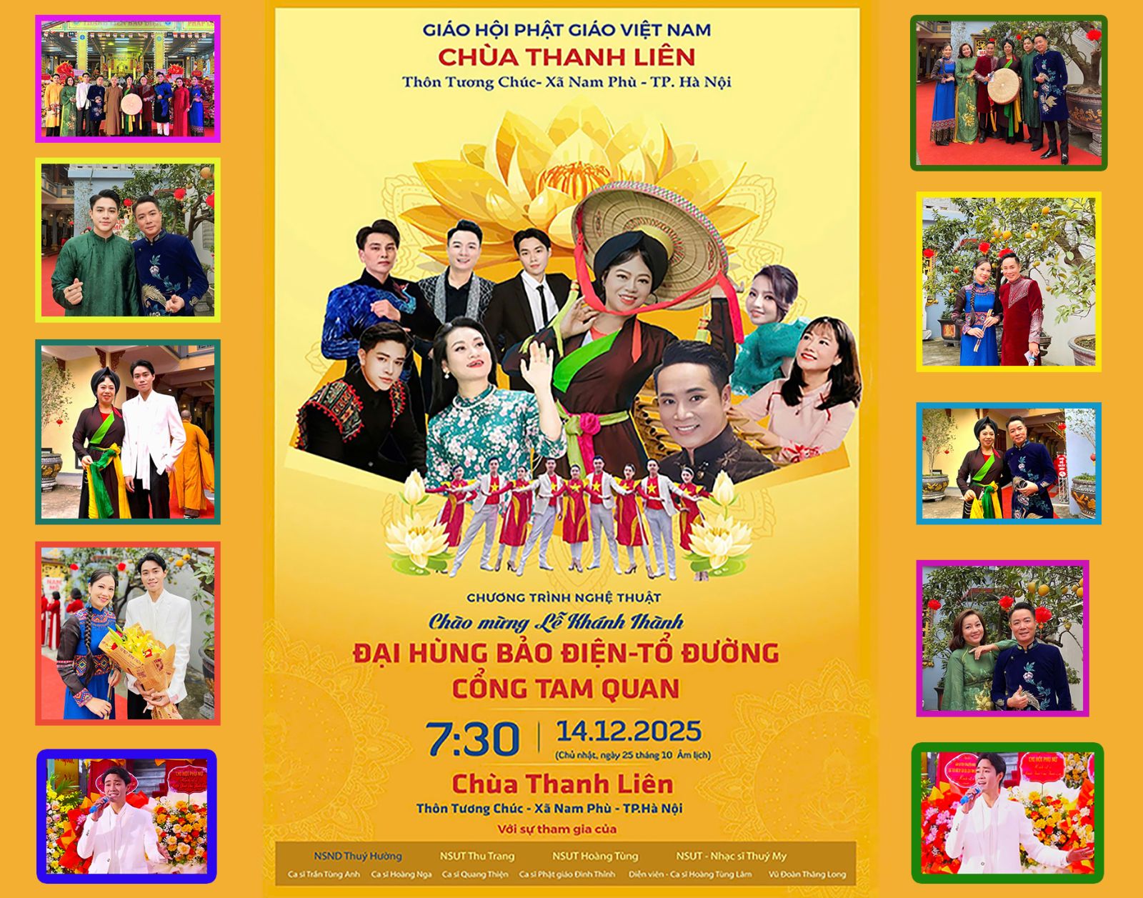 NSƯT Hoàng Tùng nhận được lời mời từ show diễn sáng ngày 14 tháng 12 năm 2025, Giáo Hội Phật Giáo Việt Nam - Thành Phố Hà Nội đã tổ chức Đại lễ khánh thành Đại hùng bảo điện và Cổng Tam quan chùa Thanh Liên thì vui mừng, phấn khởi hơn, bởi không gì vui khi có thêm cơ hội được đem lời ca tiếng hát phụng sự nhà Phật, phục vụ bà con xa gần, được gặp gỡ, trải lòng hơn cùng anh, chị, em đồng nghiệp... Và tuyệt vời là được viếng chùa, chiêm bái và nguyện cầu cho tuổi mới nhiều điều tốt đẹp, bởi vì show diễn này gần với ngày sinh nhật của anh nhất - ngày 15 tháng 12 năm 2025. Xin chúc mừng sinh nhật NSƯT Hoàng Tùng - thêm một tuổi mới thật nhiều niềm vui, bình yên, hạnh phúc!