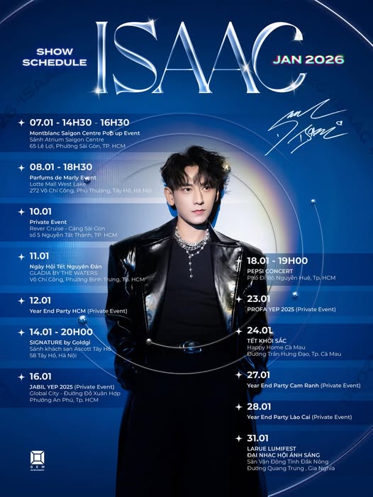 ISSAC & LỊCH DIỄN THÁNG 01 - 2026