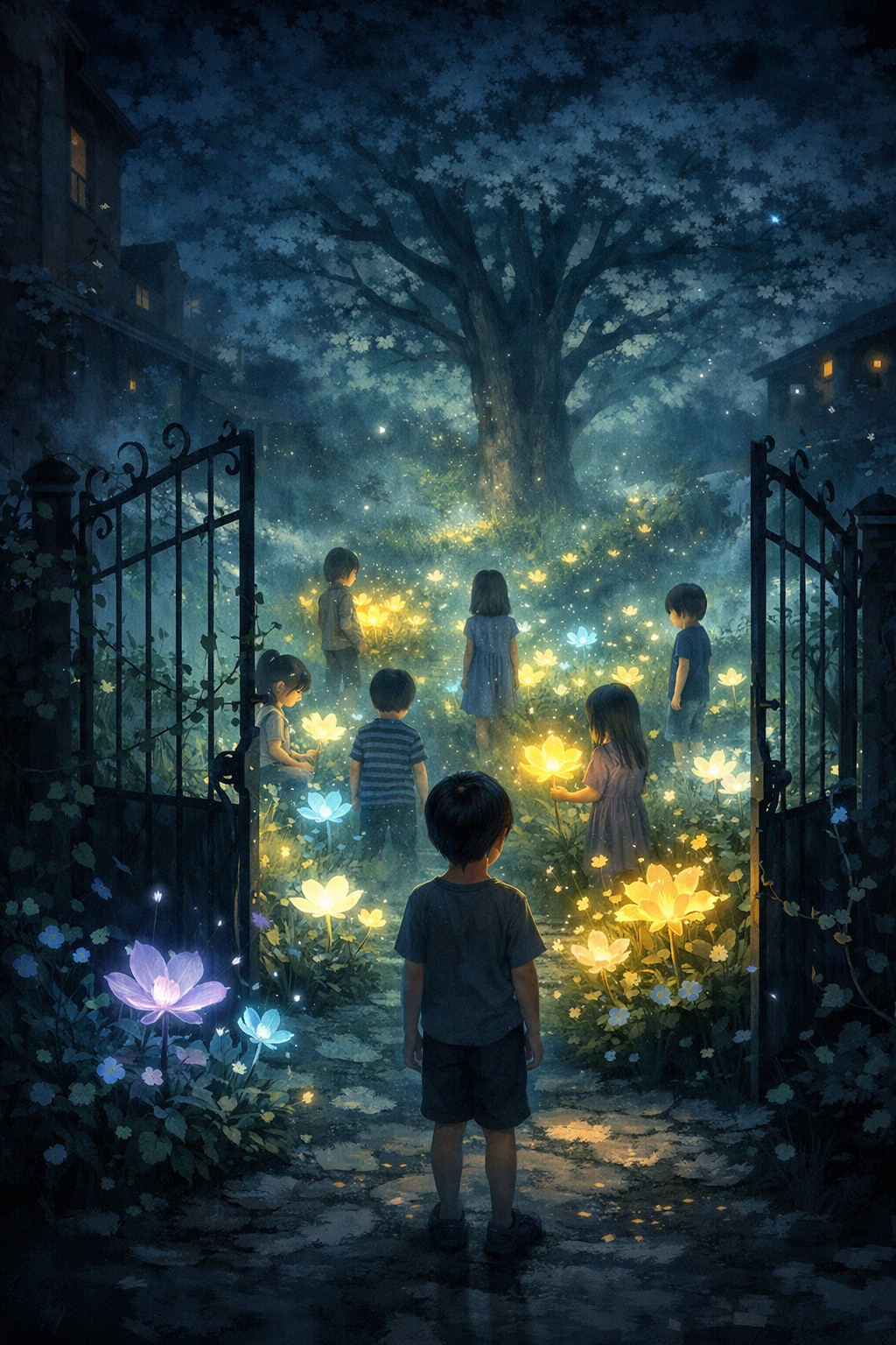 Từ những ngôi nhà xung quanh, từng đứa trẻ bước ra, không hẹn trước, không gọi nhau. Chúng đi rất nhẹ, như sợ làm vỡ đêm.